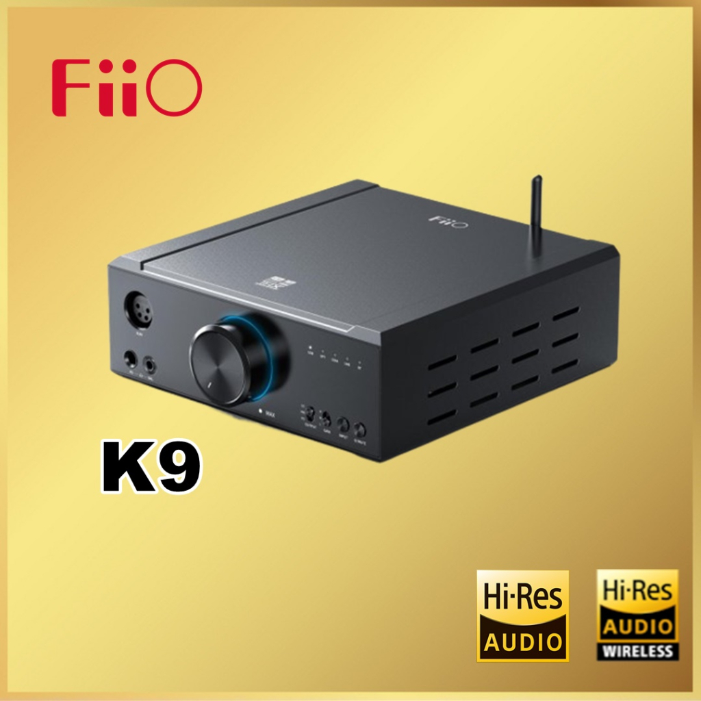 GENERAL SPECIFICATIONS: Name/Model: K9: Hardware solution: DAC:ES9068A * 2,USB:XMOS XUF208, Bluetooth: QCC5124,LPF:OPA1612 * 2, Volume IC:NJU72315 * 2,AMP:THX AAA788 + * 2, Transformer: Linear Transformer; Color: Black Volume control type: Analog potentiometer (ADC sampling) Weight: Approximately 2660g Channel balance: L12 ~ R12 (0.5dB per stage) Gain: L/M/H FiiO Control: Support Bluetooth format indication: Support Sample rate indication: support Size: 200x 224.5x 72mm (excluding foot pads) Firmware upgrade: The system firmware and Bluetooth version can be upgraded through USB Deep Standby: Long press the multi-function key for about 3 seconds Bluetooth Reception (5.1): AAC/SBC/aptX/aptX LL/aptX HD/LDAC/atpX Adaptive Bluetooth format indicator: SBC: blue, AAC: cyan, aptX HD: yellow, aptX: purple, aptX LL: purple, LDAC: white, atpX Adaptive: green The highest supported sampling rate: 768kHz-32bit/DSD512(USB DAC) 192 kHz-24bit (coaxial) 96 KHz-24bit (fiber) Adaptation Impedance: 16~600 Ω KEYS AND INTERFACES: Key: Solid key + toggle switch USB: USB B Single-ended input interface: RCA socket Balancing Line Input Interface: 4.4mm balance socket Digital fiber input interface: Optical fiber socket Digital coaxial input interface: RCA socket Balancing output interface: 4.4mm socket, XLR4 balanced socket Headset output interface: Standard 6.35mm socket Balancing line output interface: XLR3 balance socket Single-ended line output interface: RCA socket