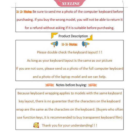 🔔🔔Catatan sebelum membeli: 🔔🔔 Karena pembungkus keyboard berlaku untuk model dengan tata letak tombol keyboard yang sama, tidak ada jaminan karakter pada bungkus keyboard sama dengan karakter pada keyboard. 🔊🔊 (Pembeli Yang sering menggunakan tombol fungsi, disarankan untuk membeli film keyboard transparan) 😘😘😘 Terima kasih atas pengertian Anda!!!