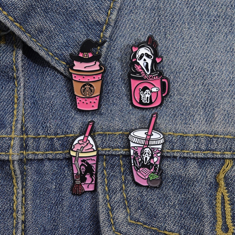 Detail Film Peripheral Lapel Pin Cangkir Minuman Menyenangkan Enamel Bros Cangkir Kopi Lencana Hadiah Untuk Teman Aksesoris Pakaian