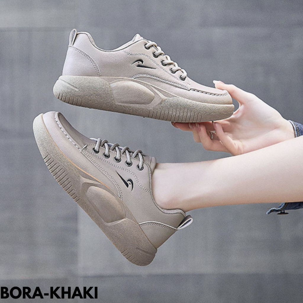 Nama Produk : Sneakers Bora Kode produk : Bora Kualitas : Import Bahan : PU Tinggi : 4 cm Berat : 730 Gram / Pasang
