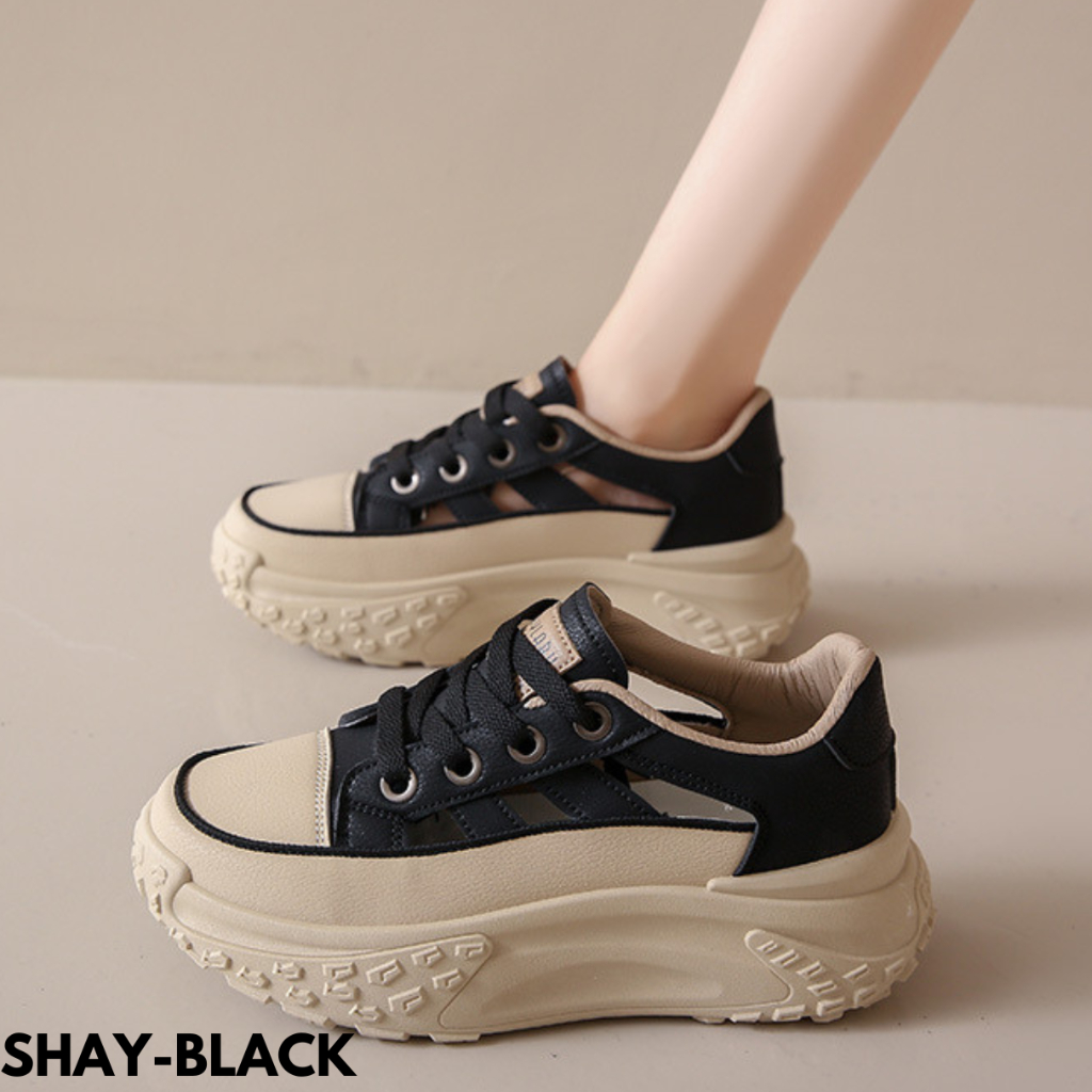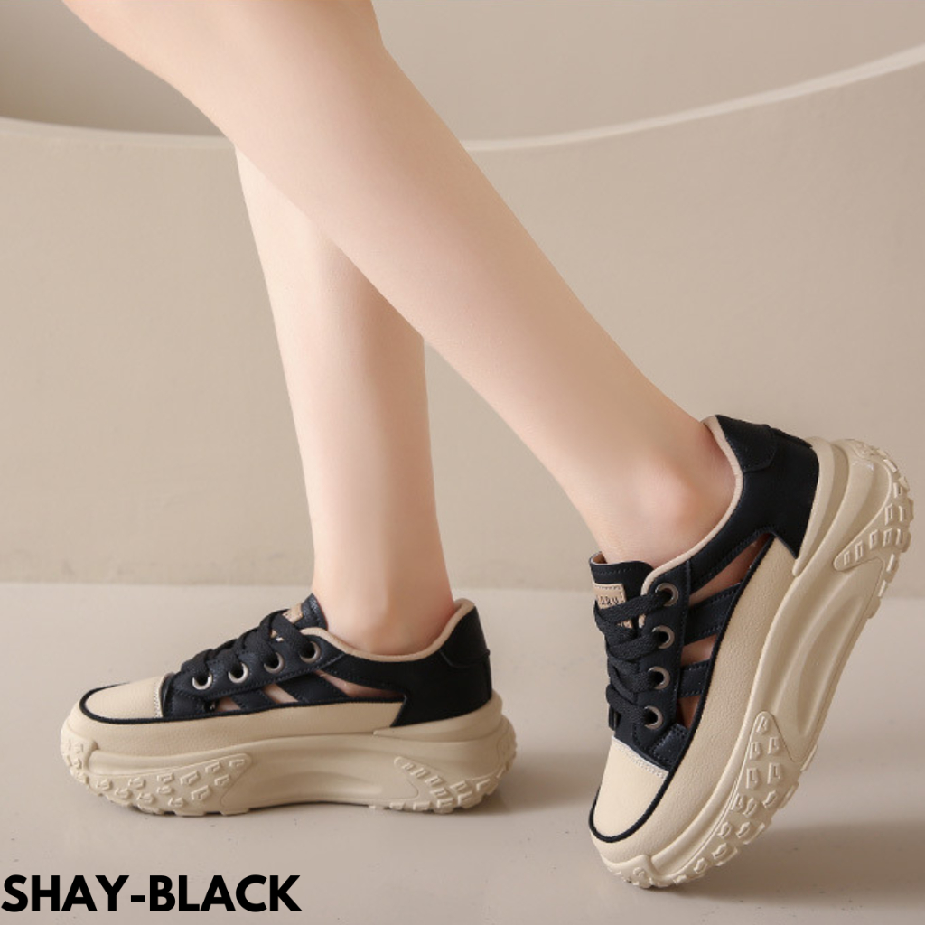 Nama Produk : Sneakers Shay Kode produk : Shay Kualitas : Import Bahan : PU Tinggi : 5.5 cm Berat : 860 Gram / Pasang