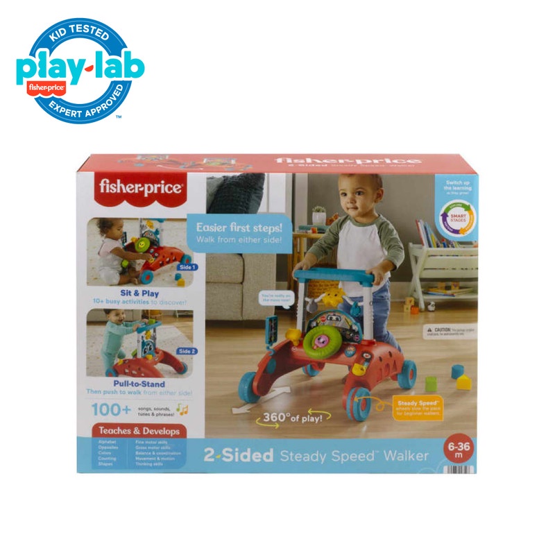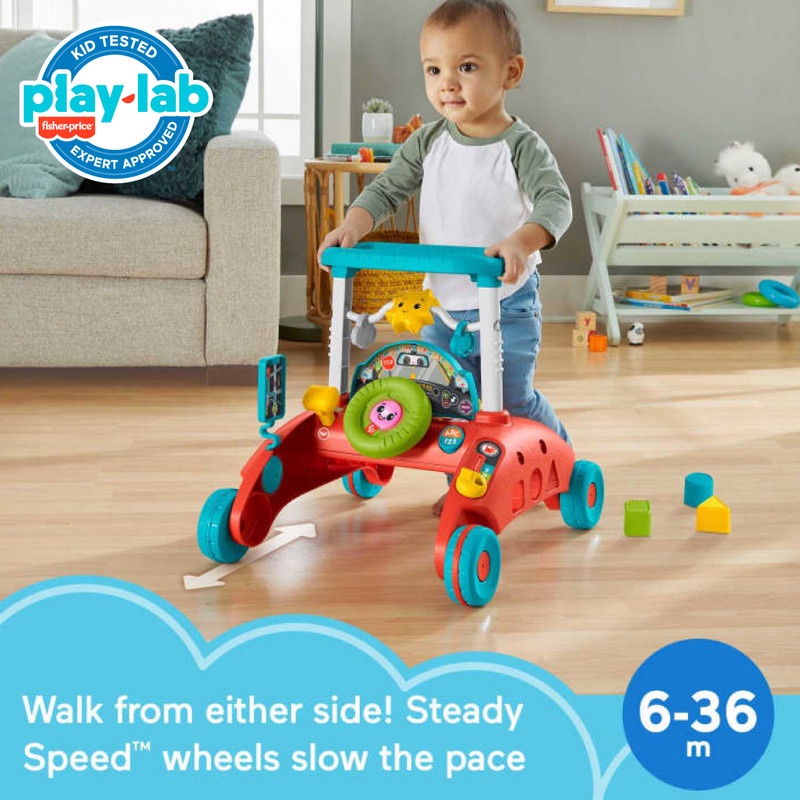 Fisher-Price 2-Sided Steady Speed Walker adalah mainan pembelajaran interaktif yang “tumbuh” bersama bayi Anda dari duduk, berdiri, dan mengambil langkah pertamanya. Baby walker bertema mobil yang unik ini memungkinkan si kecil berdiri dan mendorong dari kedua sisi dengan roda Steady Speed yang berguna untuk menjaga kecepatan lambat bagi pemula. Kedua sisi menampilkan berbagai aktivitas yang menarik, termasuk dasbor interaktif dan roda kemudi untuk “mendorong” permainan pura-pura. Selain itu, teknologi Smart Stages membantu mengajarkan abjad, lawan kata, dan berhitung saat pengemudi kecil “berlayar”, dengan 3 level permainan yang menampilkan lagu, suara, dan frasa yang memperdalam pembelajaran saat anak Anda tumbuh.