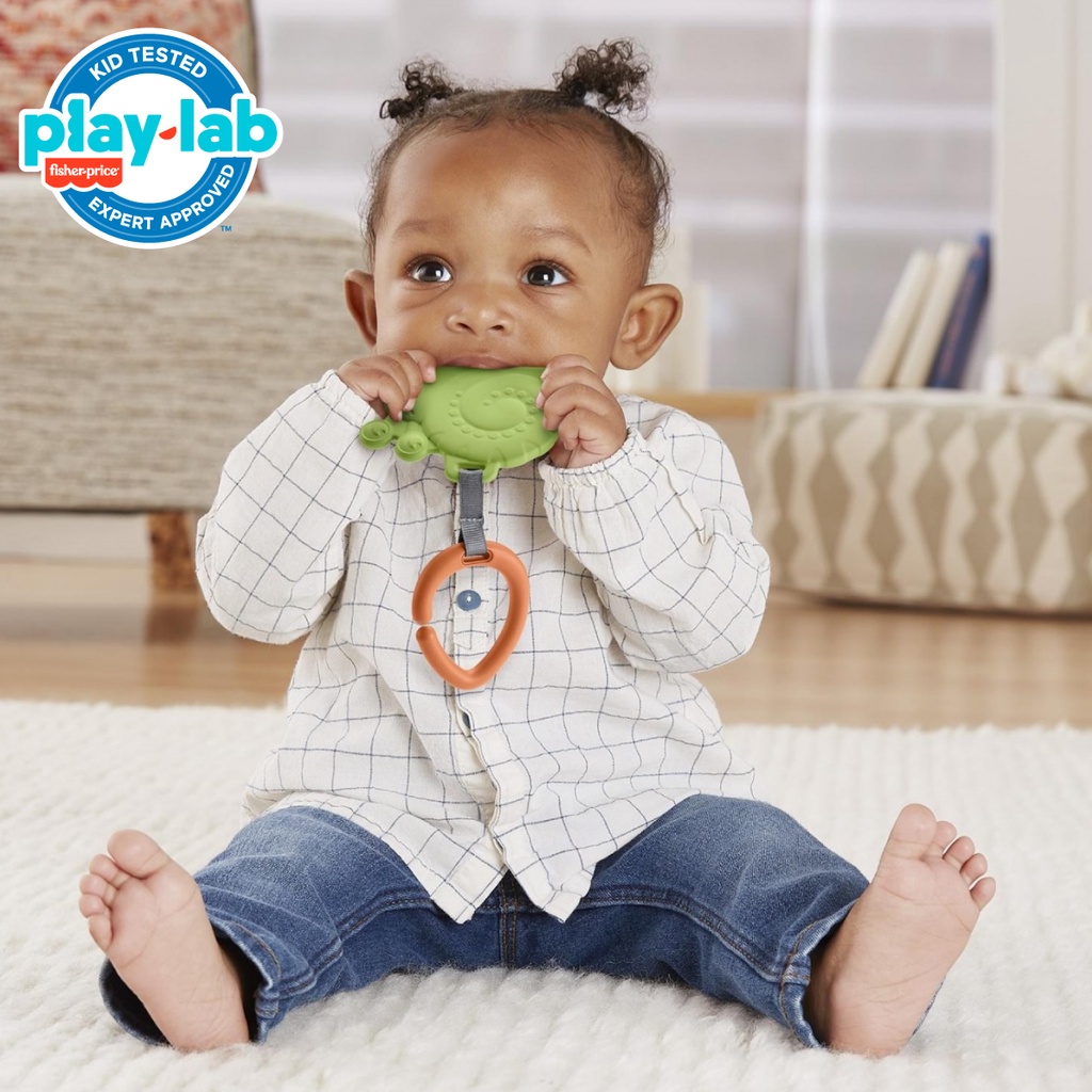 Fisher-Price® Snail Teether memungkinkan bayi bersantai dengan menggigit bantuan teman monyet yang berputar. Bayi akan senang mengunyah tubuh monyet kecil yang bertekstur dan kenyal ini; Selain itu, dilengkapi dengan klip berbentuk daun yang mudah dipasangkan ke mainan atau kereta dorong sehingga Anda dapat membawanya ke mana saja. Bayi Anda akan dapat merangsang keterampilan motorik halus dan kasarnya dengan mengambil teether dan memasukkannya ke dalam mulutnya.