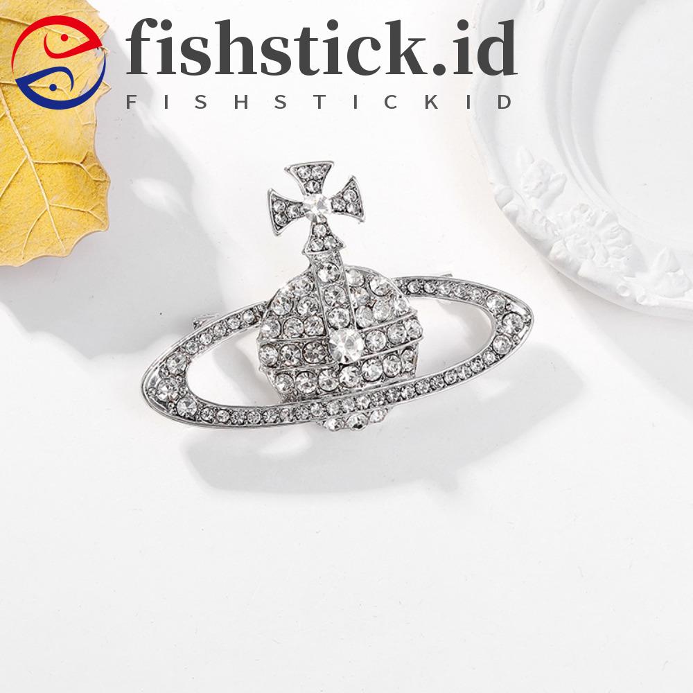 Detail Fishstick Bentuk Planet Pin Pernikahan Pesona Berlian Imitasi Bros Mewah Elegan Indah Aksesoris Jas