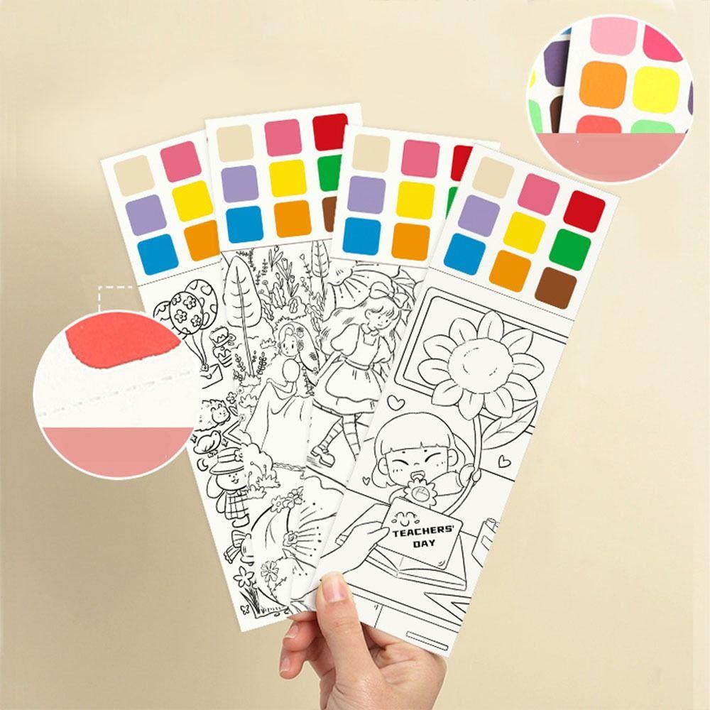 Buku & Alat Tulis > Buku Anak-Anak > Stiker & Buku Mewarnai > Fishstick Buku Mewarnai Dengan Cat Dan Kuas Portable Anak Guas Seni Mewarnai Mainan DIY Bookmark Kertas Cat Air Buku Gambar Saku