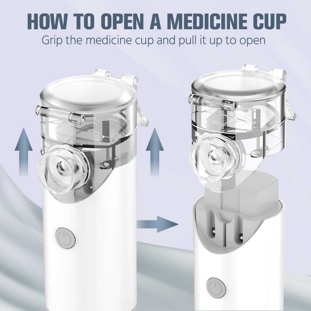 Mudah Digunakan Cara penggunaan nebulizer ini sangat mudah. Anda perlu membersihkan mulut nebulizer dengan air hangat agar steril. Buka tutup cangkir lalu masukkan cairan obat kedalamnya sesuai dengan takaran. pasang masker untuk proses penghirupan melalui hidung atau mouthpiece jika Anda akan menghirup lewat mulut. Tekan tombol on, kemudian alat akan mulai bekerja setelah 3 detik. Kemudian Anda bisa menghirup uap yang keluar dari mulut atau hidung Anda.