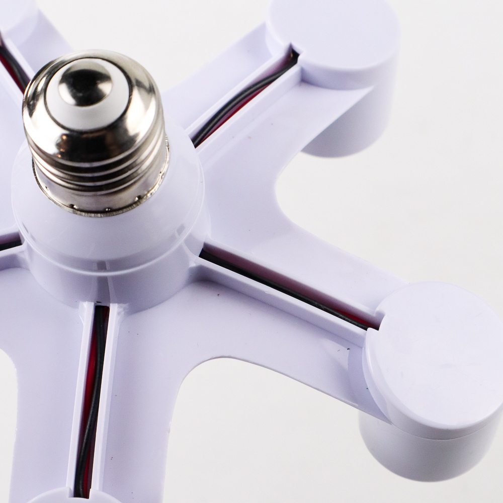 Spesifikasi TaffLED Fitting E27 Cabang 5 Lampu Bohlam Studio - HUH-4851 Voltase : 110/220 V Material : ABS Plastik Dimensi : 9.5 x 17 cm