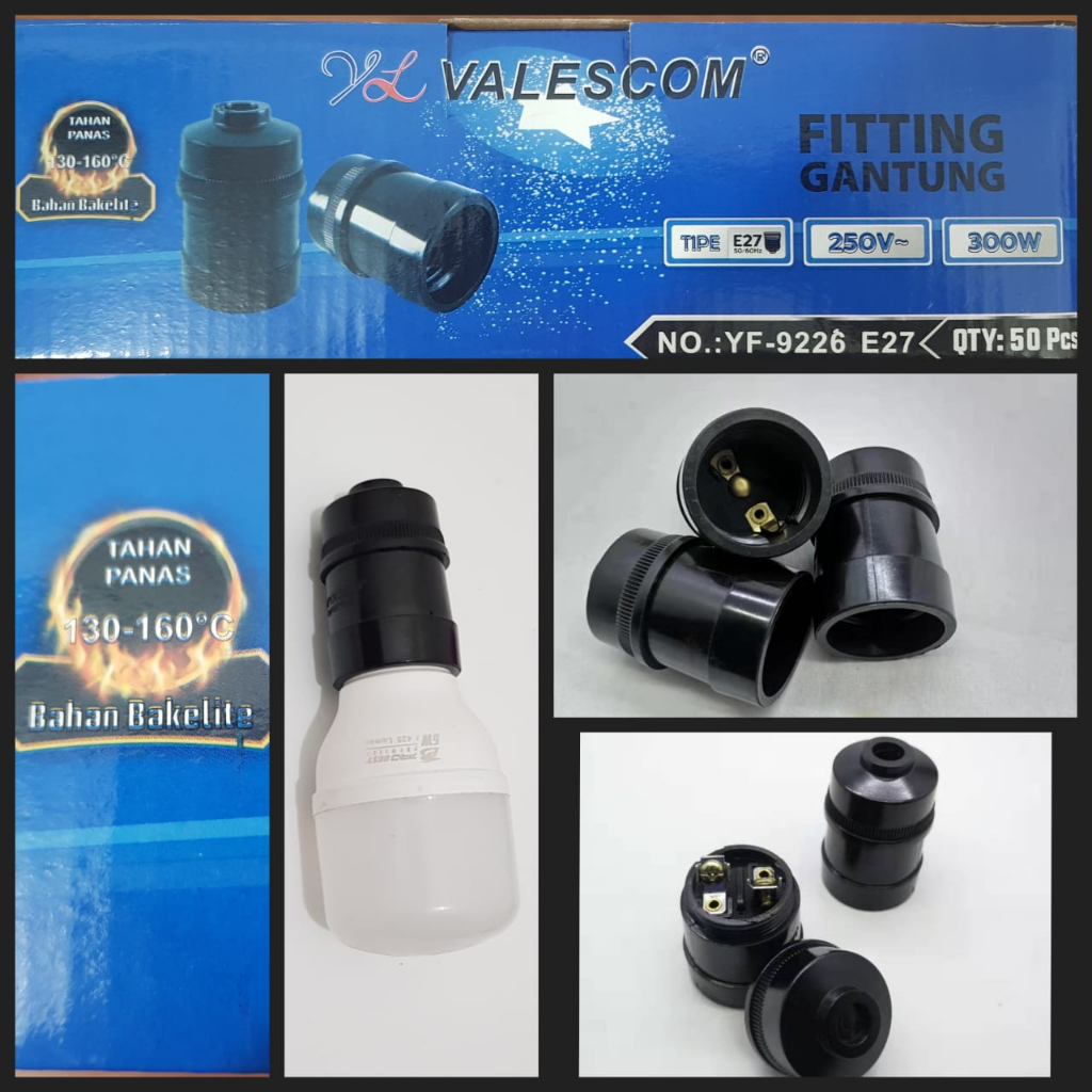 Detail FITTING GANTUNG HITAM / PUTIH E27 KUNINGAN MURAH SNI / FITTING LAMPU GANTUNG MURAH