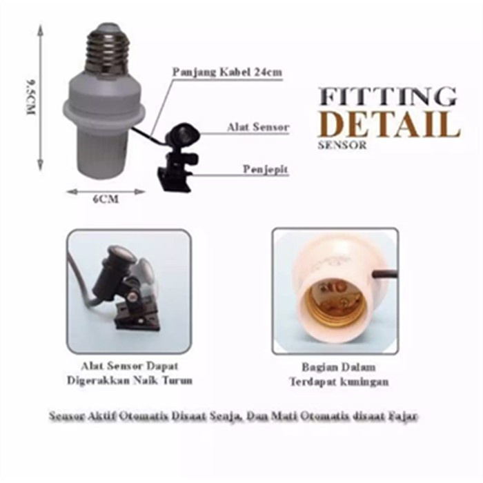 Fitting Lampu Sensor Cahaya Otomatis Untuk Segala Lampu. Fitting Sensor E27 Lampu Otomatis Cahaya Siang Dan Malam.