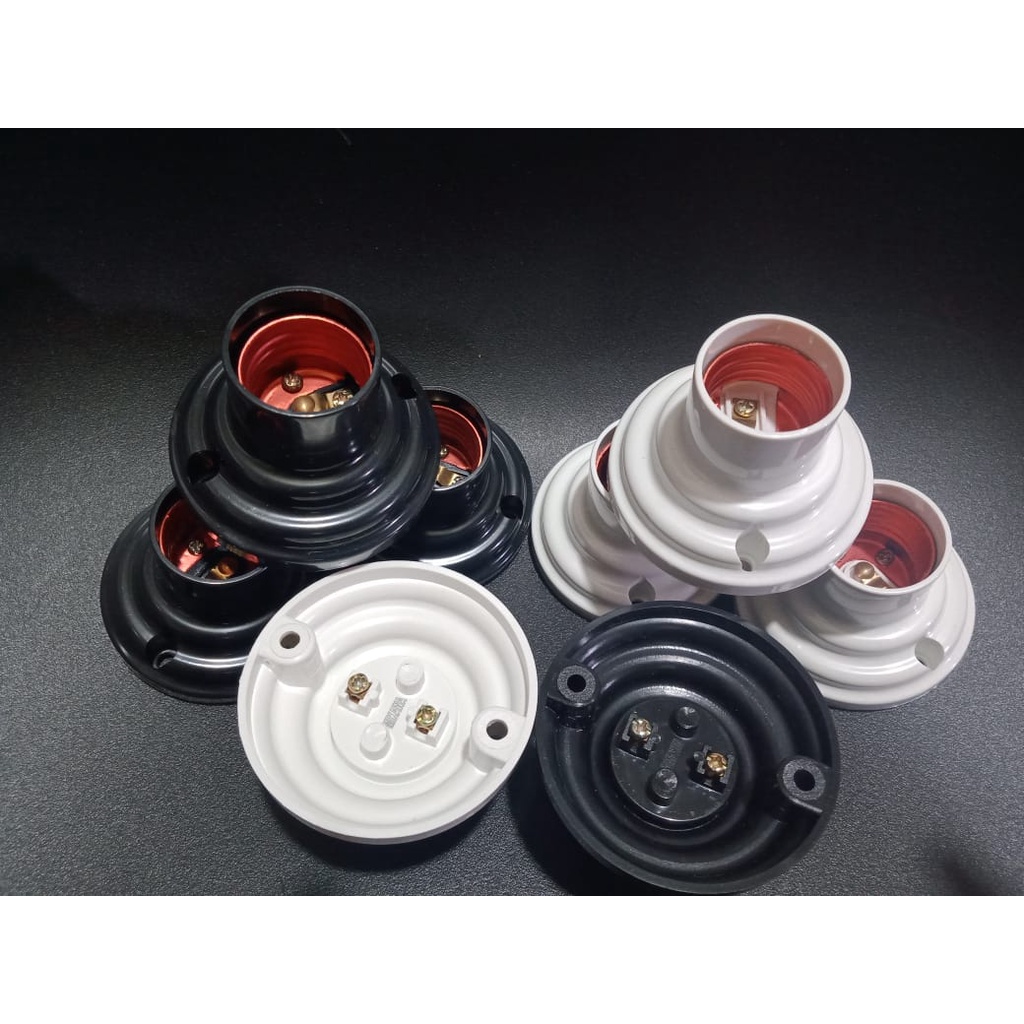 Detail FITTING PLAFON BULAT MODEL BROCO HITAM PUTIH TEMPEL BAKELITE PREMIUM E27 MURAH GROSIR