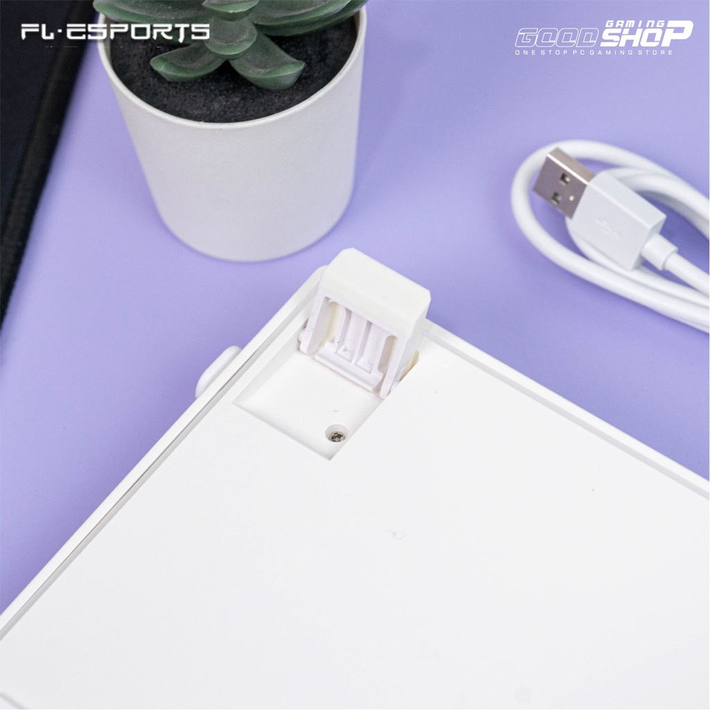 Flesports Layout: TKL (87-key) Hot-swappable switch sockets Fn layer editor Full anti-ghosting Full RGB LEDs Pre-lubed, plate-mounted stabilizers Noise-dampening material Programmable with included software and driver Adjustable feet Connectivity: USB-C