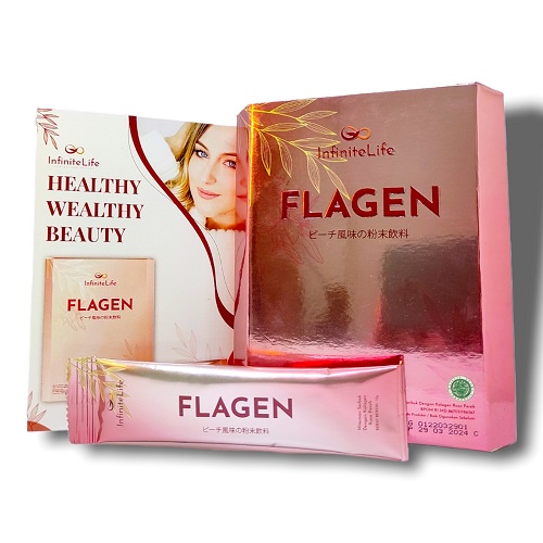 Oleh karena itu, InfiniteLife menghadirkan sebuah produk bernama FLAGEN yang merupakan minuman serbuk berkolagen tinggi dan memiliki banyak manfaat kecantikan dan kesehatan tubuh dimana bahan baku berasal dari Jepang dan telah melewati uji kelayakan yang diakui oleh banyak negara.