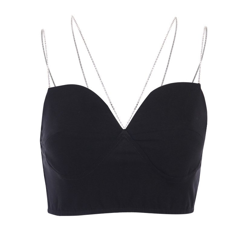 Detail Flash berlian rantai berlian tabung top sling fashion wanita gaya tubuh mematung temperamen bawah bu