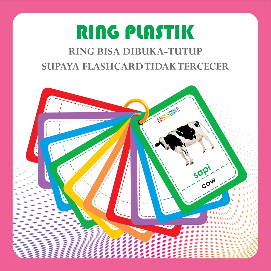 Tiap seri GRATIS ring plastik bisa dibuka-tutup, supaya flashcardnya tidak tercecer ๐