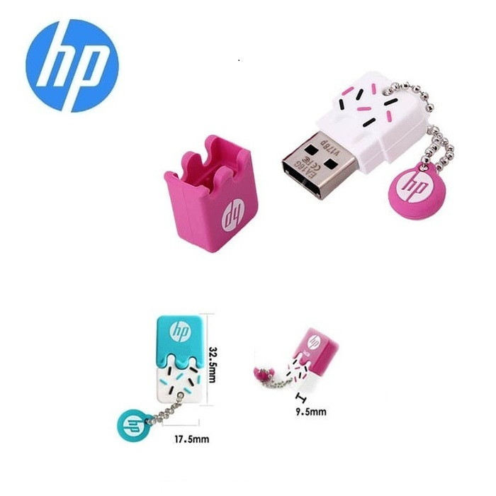 Merk : hp Type : v178 Model : ice cream Bahan : karet Kapasitas 16GB Interface : USB2.0 Varian Warna : Biru dan Pink Dimensi : 3.2cm x 1.7cm System/Software Compatibility : Windows 7,8,10,Mac OS 10.3 or later