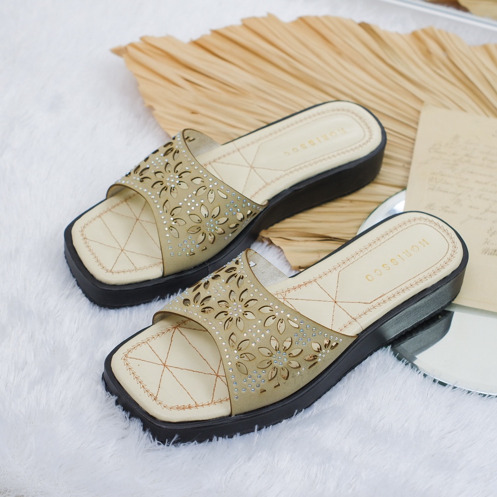 Detail flash sale 7,7 Sandal Wanita Slip Sendal casual Mutiara Wanita sandal flat Kokop kekinian SKI 04