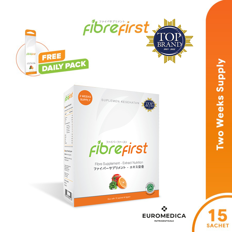FibreFirst suplemen SERAT PREMIUM dan NUTRISI dari ekstrak buah serta sayuran untuk bantu penuhi asupan serat harian dan memaksimalkan detox harian agar kesehatan pencernaan meningkat. Mengapa pencernaan harus sehat? Pencernaan berfungsi untuk mengubah makanan menjadi nutrisi yang dibutuhkan tubuh dan membuang kotoran juga zat yang sudah tidak terpakai keluar dari tubuh.