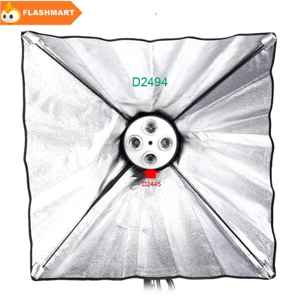Lampu studio ini berfungsi untuk merefleksikan cahaya dari lampu bohlam dengan socket 4 buah E27 sehingga lebih merata dan tidak ada hotspot cahaya. Soket lampu ini dapat dilipat sehingga tidak memakan tempat ketika dibawa berpergian. Pada pembelian, soket lampu ini tidak termasuk dengan softbox sehingga Anda perlu membelinya secara terpisah. Fitur 4 in 1 Terdapat 4 slot lampu dalam satu socketyang dapat digunakan untuk kebutuhanseperti reflektor atau diffuser tergantung keinginan anda. Bila digabungkan dengan softbox lembut seperti diffuser, maka cahaya yang dihasilkan akan lebih soft dan rata. Untuk memasang lampu secara bersamaan, setiap diameter lampu harus kurang dari 80 mm.