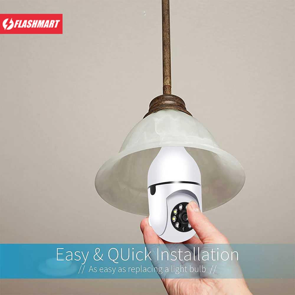 Sangat Mudah untuk Dipasang Karena menggunakan soket bohlam lampu E27, kamera CCTV sangat mudah untuk dipasang.Anda pun tak membutuhkan kabel-kabel yang membuat ribetkarena Kamera CCTV ini sudah dapat menggunakan akses internet WiFi sehingga bisa terhubung tanpa kabel.