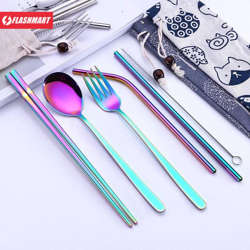 Set perlengkapan alat makan elegan seperti sendok, garpu, pisau yang cocok untuk anda bawa pada saat berpergian seperti pada waktu lunch atau dinner dengan client atau pasangan Anda, sendok dengan warna gradasi memberikan kesan mewah cocok untuk Anda yang gemar memakan steak. Fitur Wisata Kuliner Perlengkapan sendok garpu pisau ini cocok untuk Anda bawa sebagai perlengkapan makan pribadi Anda, set perlengkapan lebih cocok digunakan untuk ke acara makan formal karena desain warnanya yang mewah seperti steak, Anda juga dapat menggunakan ini untuk makan biasa di taman atau ketika camping.