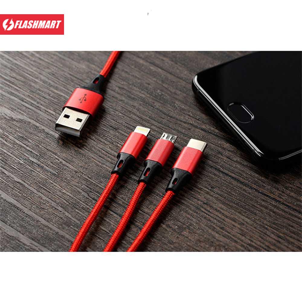 Detail Flashmart Kabel Charger 3in1 Micro USB + Lightning + USB Type C 1.2 m - US186