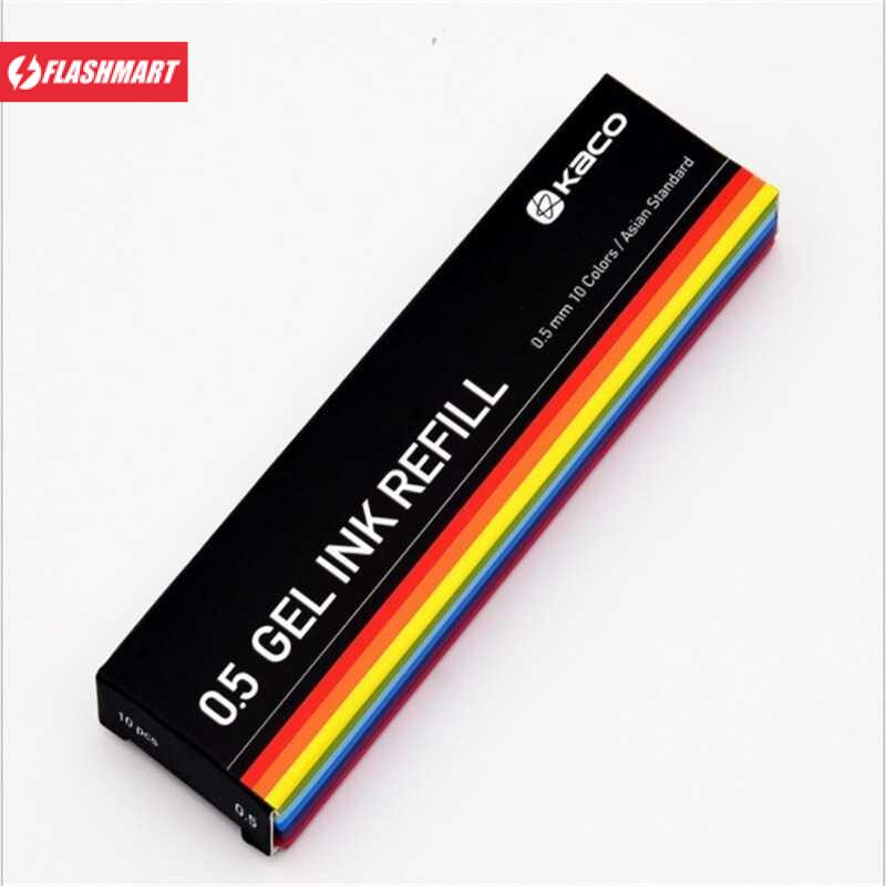 Spesifikasi KACO Refill Tinta Pulpen Gel Ink Bolpoin 0.5mm 10 PCS Mix Ink - K1602 Dimensi : Panjang: 110 mm