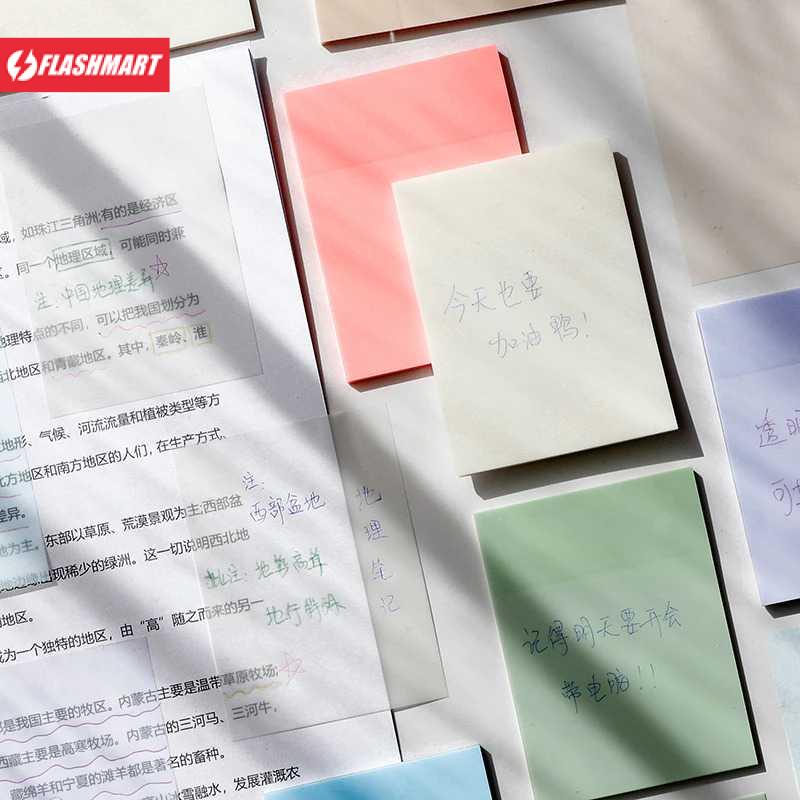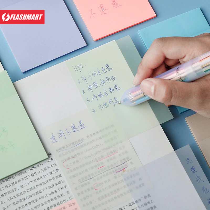 Stiker pengingat atau sticky notes dengan desain transparan ini dapat merekat pada kertas atau benda lainnya yang ingin Anda tempelkan. Keunggulan dari kertas ini adalah tidak mudah sobek dan dapat menahan air, sehingga Anda bisa menggunakan stiker pengingat ini dimana pun. Fitur Kertas Notes Dengan sticky notes ini Anda dapat menuliskan catatan penting, jadwal, pengingat kegiatan, dan lainnya. Kertas ini dapat Anda tempel pada kertas lain ataupun benda-benda dengan permukaan halus.