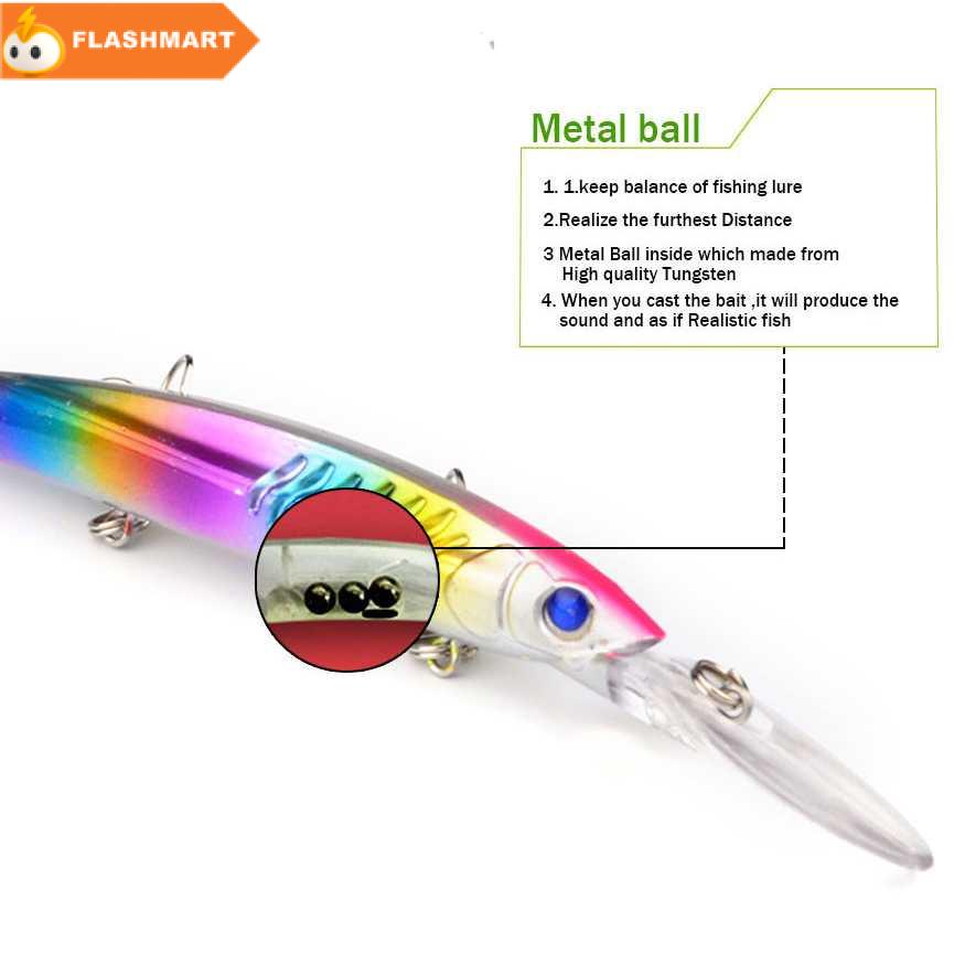 Tiga Kait di Tubuh Badan umpan didesain memiliki 3 kail pancing yang tajam, memudahkan Anda untuk menangkap ikan dari segala sudut gerak ikan.