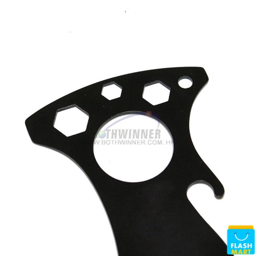 Pembuka botol serba guna ini memiliki berbagai macam fungsi antara lain pembuka botol, pemutar baut dengan berbagai macam ukuran mata baut dan garpu. Fitur Multifungsi Terdiri dari beberapa fungsi seperti pembuka botol, pemutar baut dan garpu.