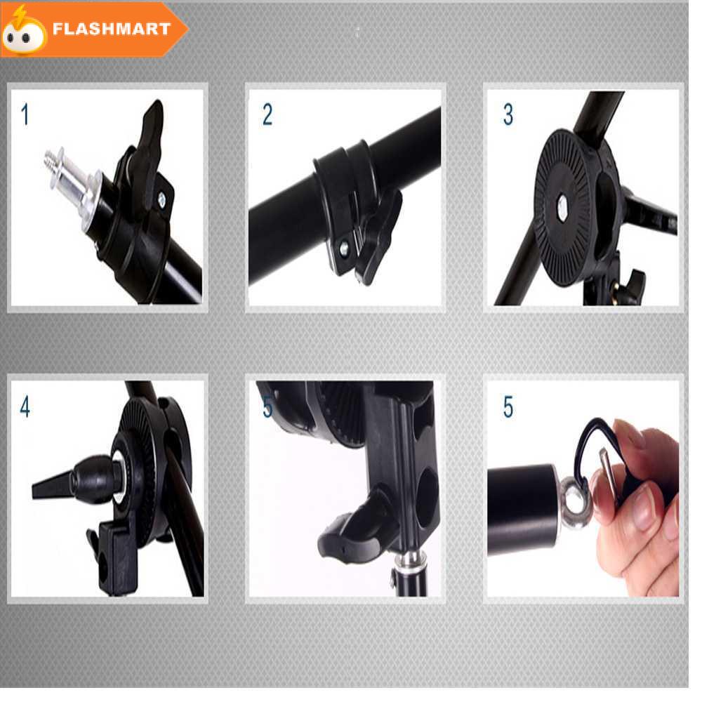 Boom arm ini adalah sistem penyeimbang yang digunakan untuk menggantung softbox lampu flash kamera. Boom arm ini biasa dikombinasikan dengan light stand untuk mendapatkan sudut pencahayaan yang sempurna. Fitur Universal Boom arm ini dapat digunakan untuk menaruh berbagai ukuran reflektor lampu flash kamera hingga ukuran maksimal 140 cm.