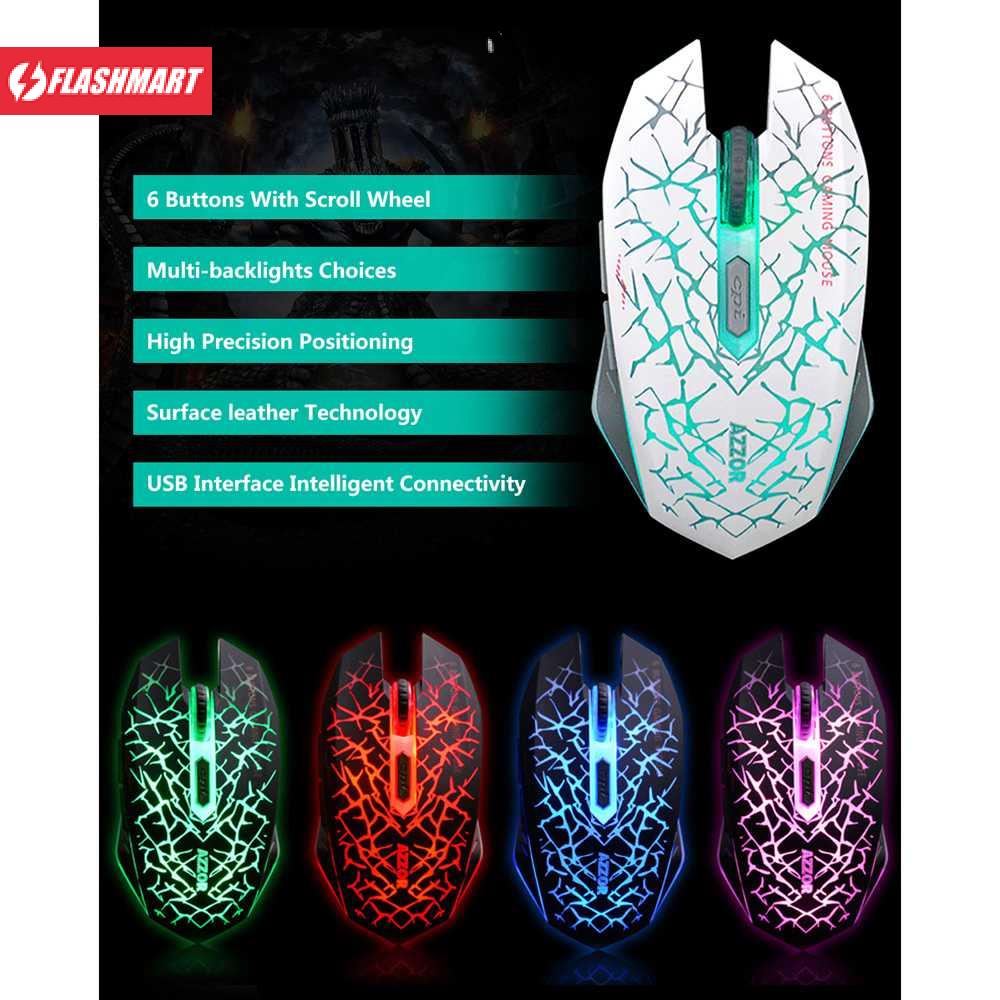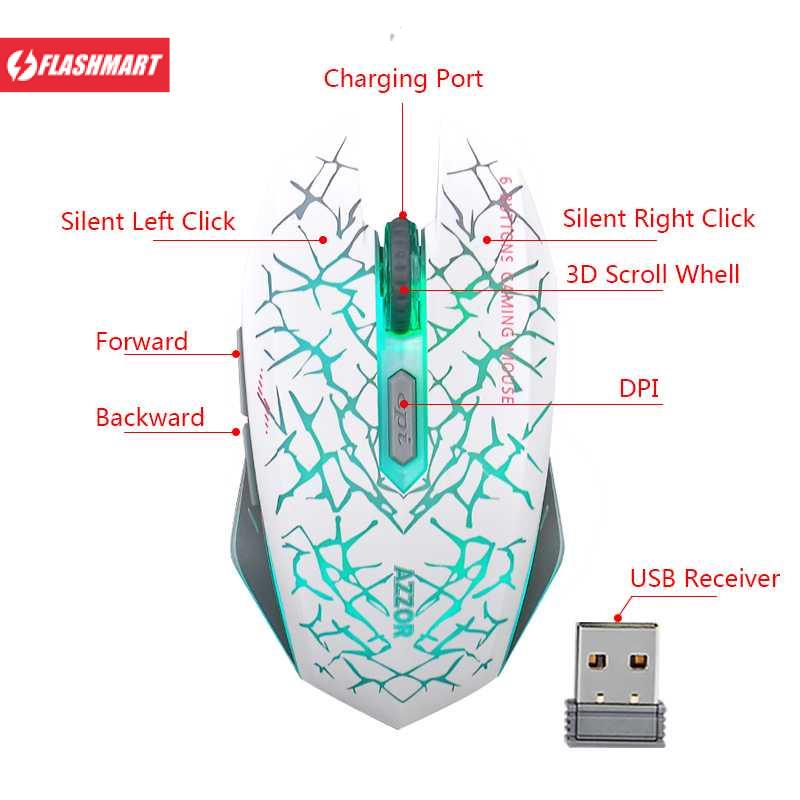 Mouse gaming dari AZZOR hadir dengan desain body mouse yang gagah layaknya mouse gaming pada umumnya. Desain ergonomis membuat mouse ini sangat nyaman digunakan, ditambah dengan sensor mouse yang akurat maka performa gaming Anda akan semakin meningkat. Fitur Mouse Gaming Nirkabel Tidak perlu lagi risihdengan kabel-kabel kusut dan mengganggu pergerakan saat bermain game karena mouse ini telah menggunakan teknologi wireless sehingga bermain game menjadi lebih nyaman. Mouse ini juga dapat Anda isi ulang dayanya menggunakan kabel USB tanpa perlu mengganti baterai sehingga lebih praktis dan benar-benar hemat.