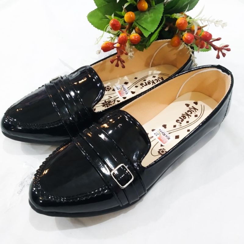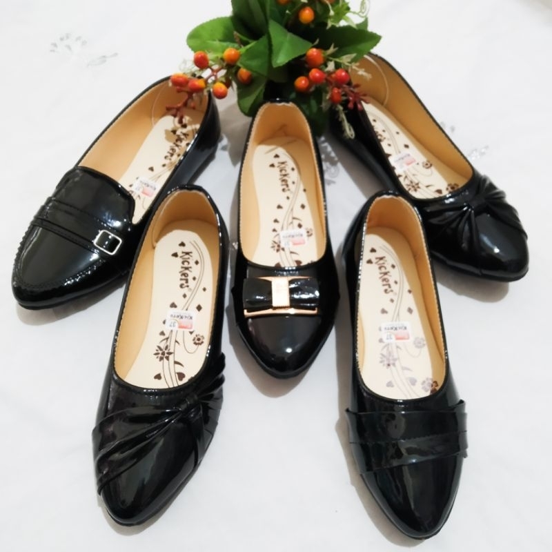Flatshoes kickers sepatu kickers sepatu kerja sepatu wanita warna hitam flatshoes kantor hitam glossy sepatu balet formal