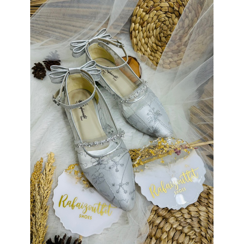 Flatshoes wanita cocok utk acara wisuda wedding undangan dan acara lainnya warna silver model vilea ada pita cantik
