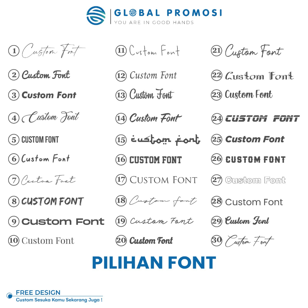 NOTE : 1. Free Bubble Wrap 2. Rusak karena proses pengiriman diluar tanggung jawab kami. 3. Pemesanan tanpa keterangan custom logo ataupun file logo, akan dikirim stock logo sesuai dengan lapak pesanan. 4. Kalau ingin komplain harus ada video unboxing yang terlihat dari semua sisi, jika tidak ada tidak akan diproses. 5. Batas waktu konfirmasi adalah selama 4 jam setelah preview ditampilkan melalui chat, jika tidak ada respon setelah 4 jam, akan langsung diproses cetak untuk menghindari keterlambatan. 6. Preview yang diberikan oleh kami mohon dilihat secara teliti. Apabila sudah konfirm dan ternyata tidak sesuai, Global Promosi tidak bertanggung jawab.