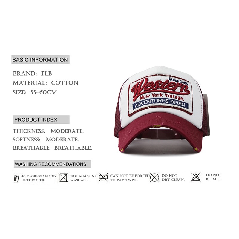 Topi trucker ini hadir dengan motif western New York yang cocok digunakan sehari-hari untuk melindungi kepala Anda dari panas terik matahari. Terbuat dari bahan katun berkualitas sehingga tidak mudah rusak. Bagian visor topi memiliki model sobek-sobek menambahkan kesan santai dan rebel.