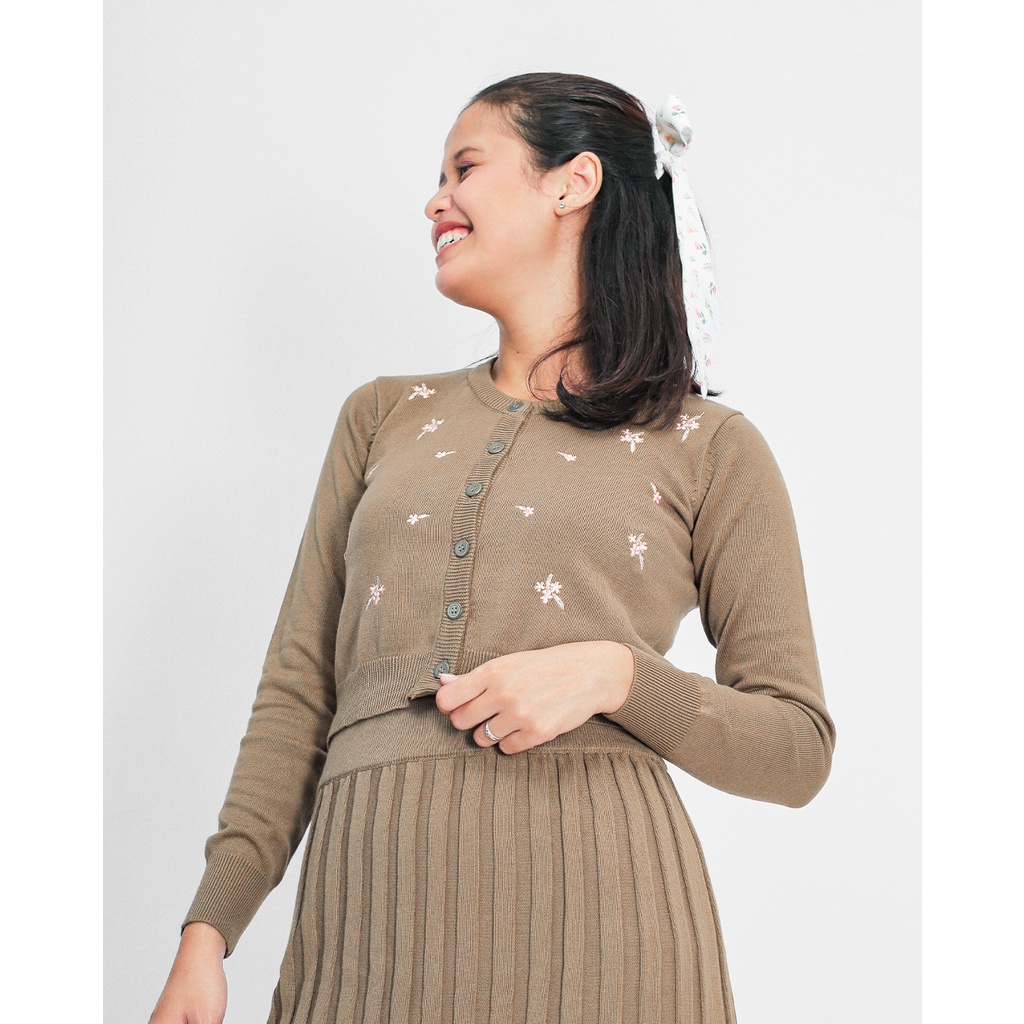 Knit Cardigan dengan aksen motif bunga bordir tampil dalam potongan fit body menggunakan material knit yang lembut, nyaman dan stretchy. Fleuria cardigan will support girl day out agenda!