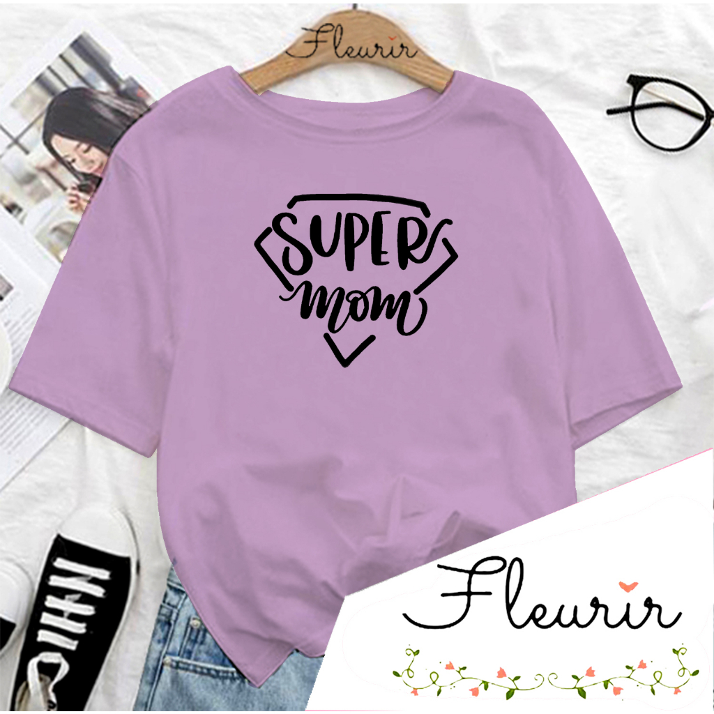 Detail FLEURIR - COD KAOS WANITA SUPER MOM REMAJA DEWASA UNISEX TSHIRT JUMBO OOTD LENGAN PENDEK OVERSIZE