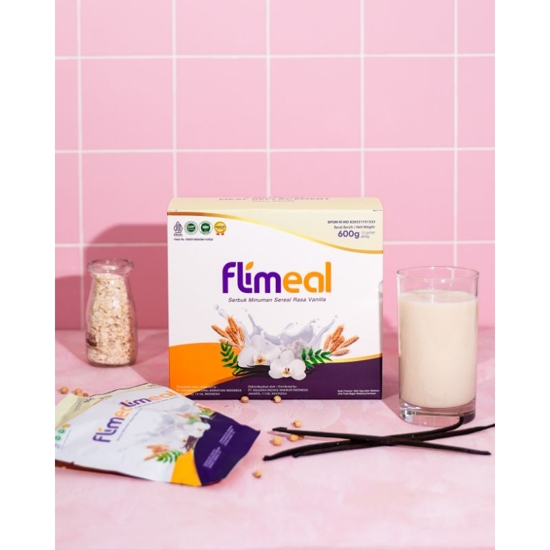 Apa itu Flimeal ? FliMeal adalah minuman pengganti menu sarapan atau Meal Replacement yang diformulasikan khusus untuk Anda yang sedang mempertahankan atau menurunkan berat badan. dengan bahan dan kandungan sebagai berikut : - Protein kedelai isolat - Beras coklat - Chia seed - Bubuk flaxseed oil dan lain lain