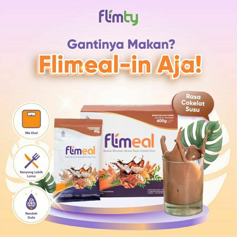 Apa itu Flimeal ? FliMeal adalah minuman pengganti menu sarapan atau Meal Replacement yang diformulasikan khusus untuk Anda yang sedang mempertahankan atau menurunkan berat badan. dengan bahan dan kandungan sebagai berikut : - Protein kedelai isolat - Beras coklat - Chia seed - Bubuk flaxseed oil dan lain lain