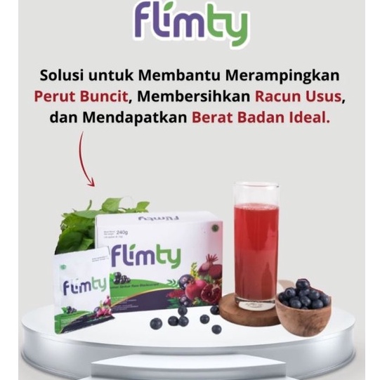 FLIMTY adalah solusi All-in-One untuk mendapatkan berat badan ideal, membersihkan/detox usus, saluran pencernaan, dan zat-zat yang tidak bisa terurai yang bersarang di tubuh Anda selama ini.
