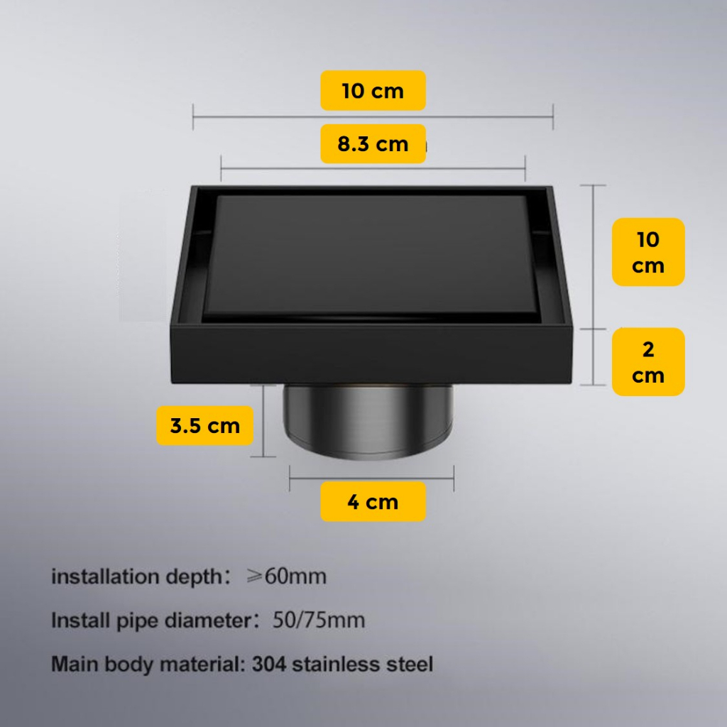 Description: This square-shaped floor drain is suitable for bathroom, kitchen to drain waste water, meanwhile it can filter hair and residue to avoid clogging up. Large hallow out area ensures quick drainage speed. Corrosion resistance, no distortion, durable.