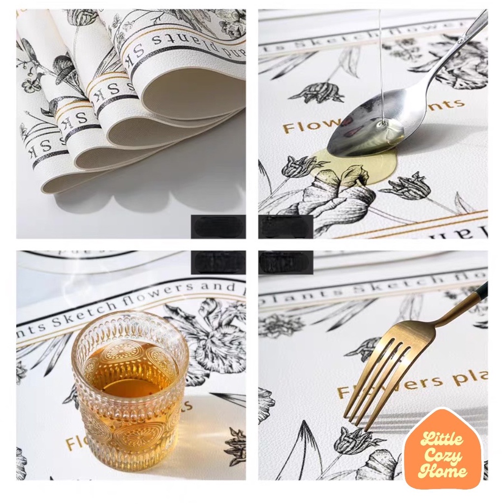 Perlengkapan Rumah > Peralatan Makan > Tatakan Piring & Gelas > Flora Leather Placemat / Alas Meja Makan Motif Floral Bunga Elegan / Tablemat / Taplak Meja Kulit Anti Air Waterproof