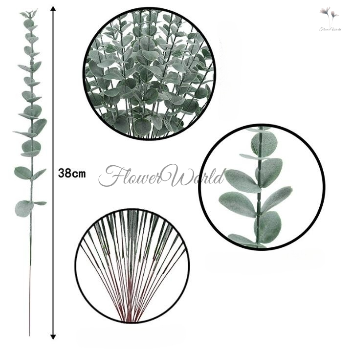 Souvenir & Party Supplies > Bunga > Buket Bunga > [FlowerWorld]Artificial Flocking Daun Eucalyptus 1 Tangkai/Artifisial Daun Plastik Palsu/Daun Dekorasi Buket Bunga Artifisial/Plastik Buatan Imitasi Hias Dekor Buket Bouquet Rumah Pesta/Bunga Hias Plastik/Bunga Hias Plastik Murah Dan Import