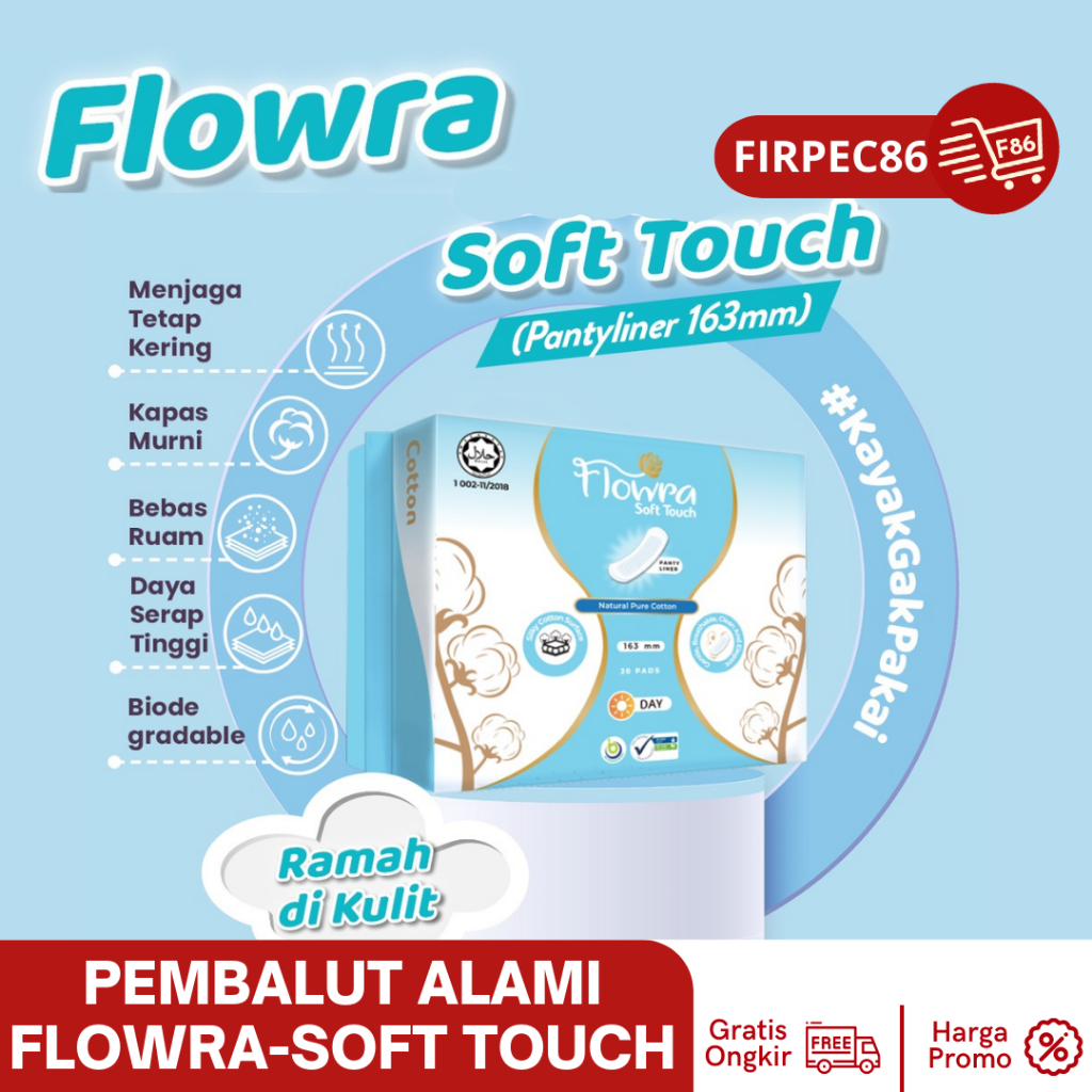 Detail Flowra Soft Touch Panty Liners, Kapas Murni,Lembut,Halus& Extra Kering