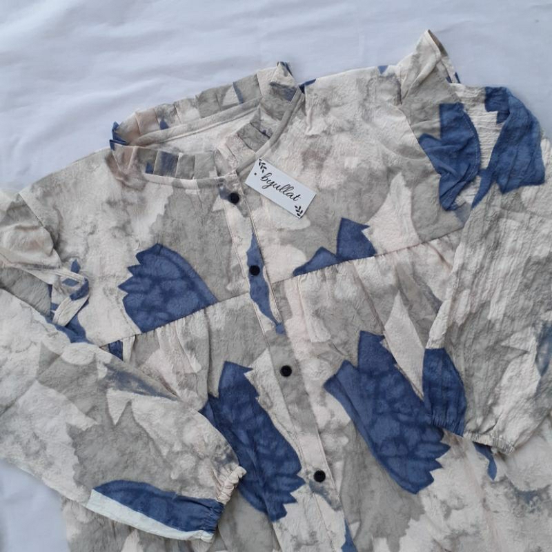 Flowy Blouse Part 2 - Bahan : Crinkle - Size : LD 100cm, Pjg 65cm - Detail : ✔ Bagian depan full kancing ✔ Ada ruffle dibagian bahu ✔ Bagian tangan full kerut ✔ Bagian kerah model ruffle ✔ Motif nggak pasaran dan limited stok. Jadi kalo habis lgsg ganti motif - #blousebunga#blousekekinian#atasanbunga#atasan motif#blousemotif#blousebusui#atasanbusui#byullat