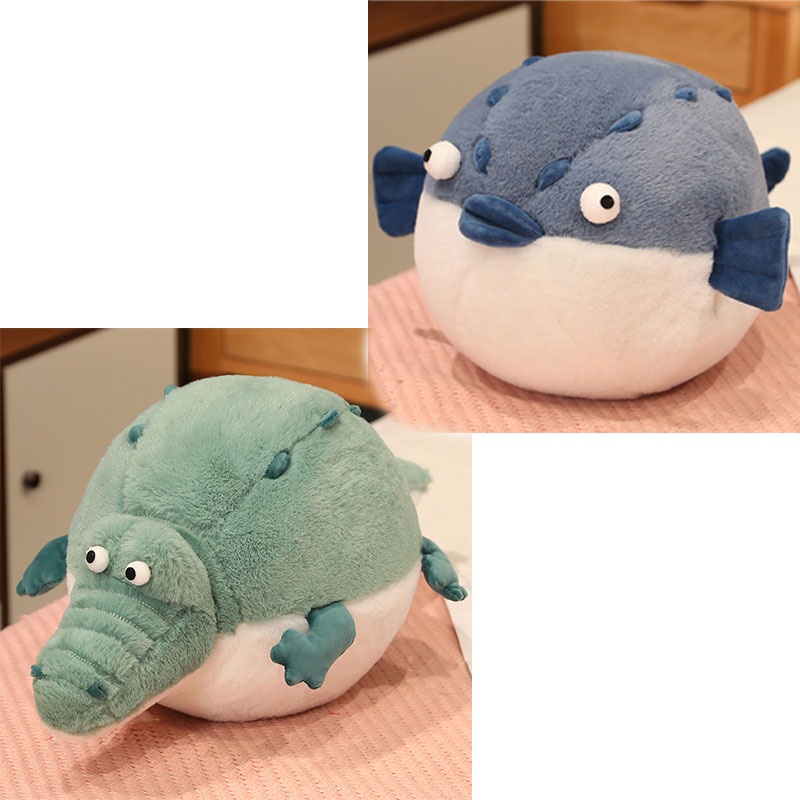 Bantalan Boneka Hewan Dekorasi Puffer Buaya Mainan Mewah Boneka Tidur Stuffed Animal pad Dekorasi Buaya