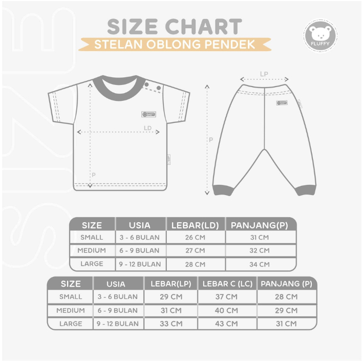 Fluffy Babys Wear dibuat dari bahan kaos TC yaitu gabungan serat kapas (serat alam) dan sintetis, yang membuat kaos TC mempunyai keunggulan dibandingkan cotton lain, yaitu: * Mempunyai handfeel yang lembut * Memiliki daya serap air yang baik * Pakaian tidak mudah berubah bentuk.