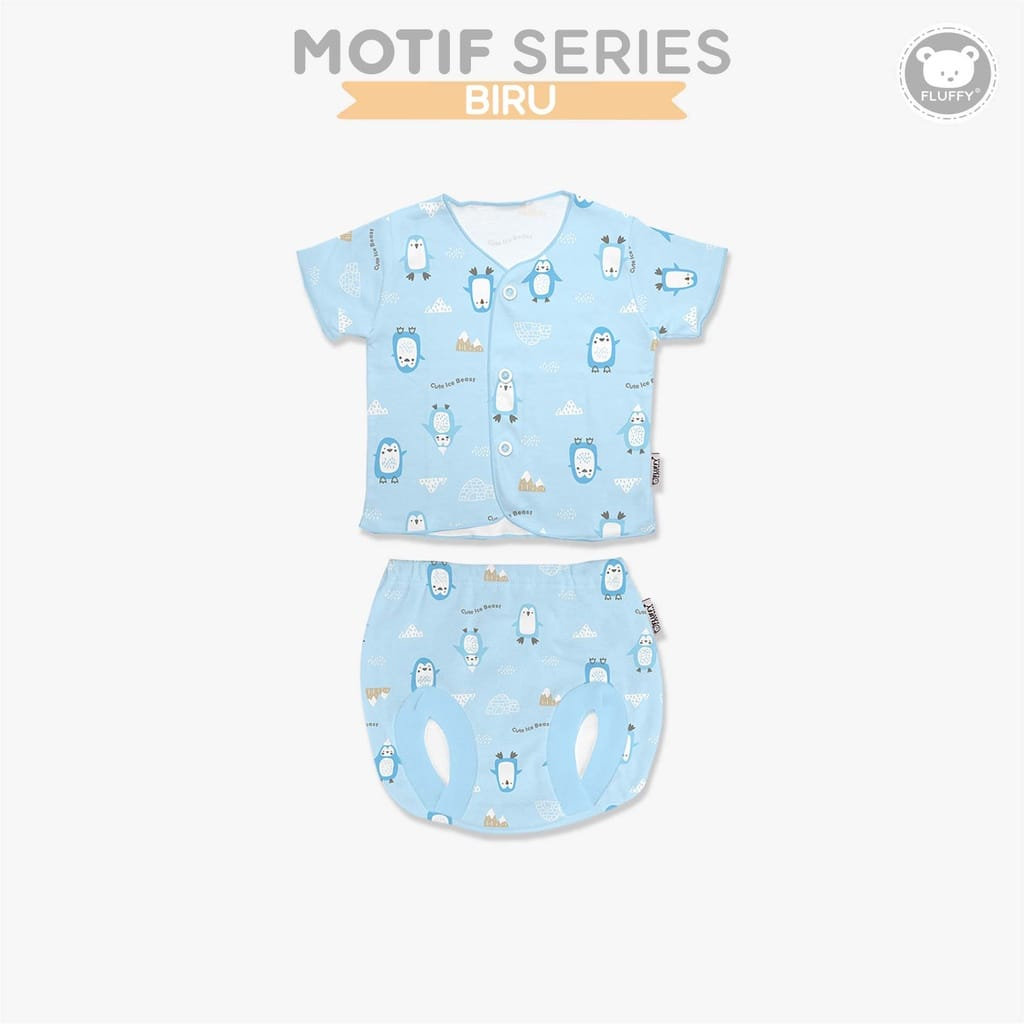 Detail Fluffy Stelan Baju Lengan Pendek Kancing Depan Celana Pop Newborn (0-3 Bulan) Isi 3 Pcs
