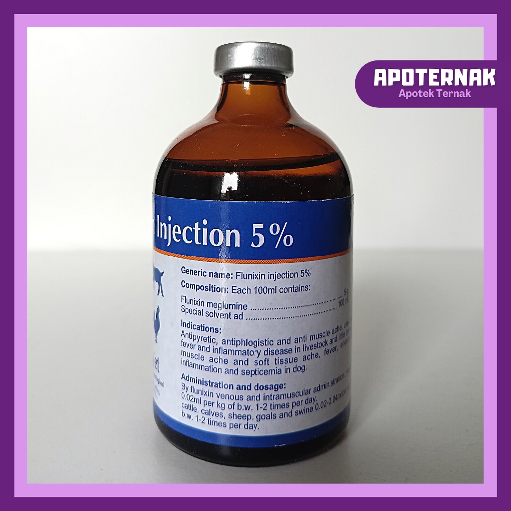 Hobi & Koleksi > Perawatan Kesehatan Hewan > Obat > FLUNIXIN Injeksi 5% 100ml | obat hewan bengkak pincang obat Analgesik obat Anti Nyeri Anti Piretik obat anti meriang Anti Inflamasi anti Radang, Anti Racun | GLOBE VET
