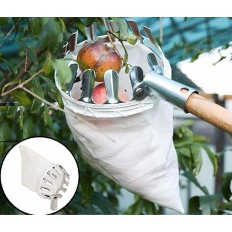 Spesifikasi Produk (gambaran, kurang lebih): Material: metal+kain Jenis buah: apel, pir, jeruk, jambu,mangga dan lain sebagainya Diameter: ~13cm Kedalaman tas/karung: ~20cm **Tidak termasuk galah / tongkat